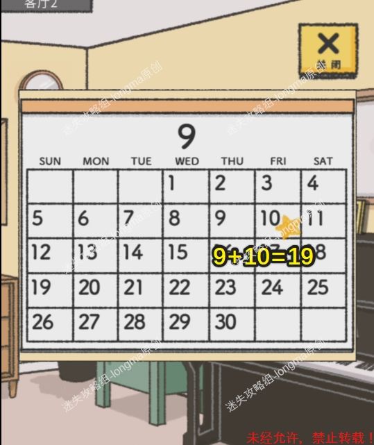 70.来到客厅2,点击日历,对照颜色,得出红色密码:21,黄色密码:19(月+日)。70