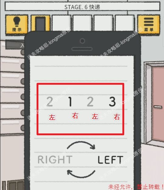 19.点击快递箱根据密码点击:左2、右1、左2、右3,得到快递。19