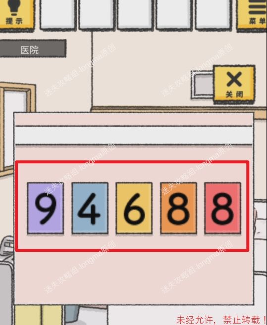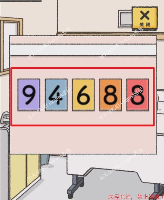 37.点击桌子上的花瓶,数每种颜色的花瓣,得到密码:94688。37