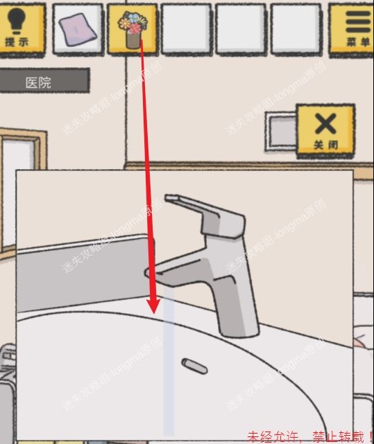 54.点击花盆,得到脏兮兮的花盆,将花盆拿到水盆处换水。54