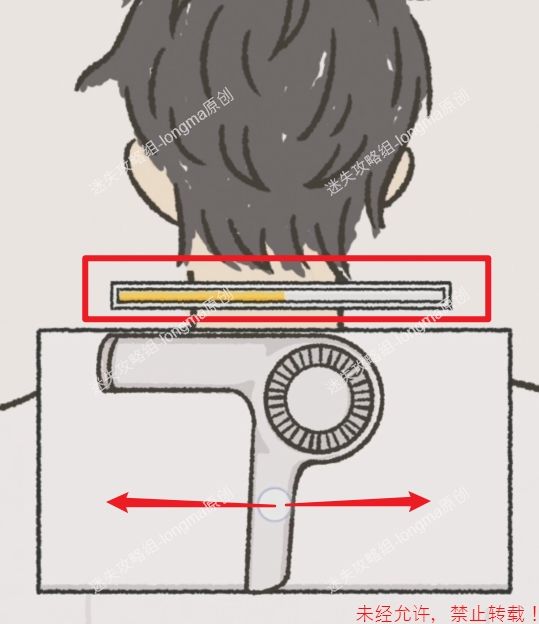 2.点击吹风机旁边的小圆点,按住左右移动吹风机,使上方的进度条到头。2