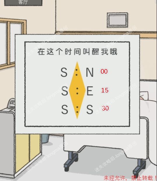11.点击床头时刻表,推断出闹铃时间(字母代表钟表分针的方向,上北N、下南S、左西W、右东E)。11
