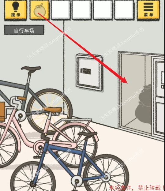 4.来到屋子吐司机的位置,点击右边自行车照片。4