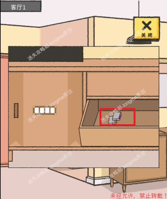 68.来到客厅1点击打印机下的柜子,输入密码。68