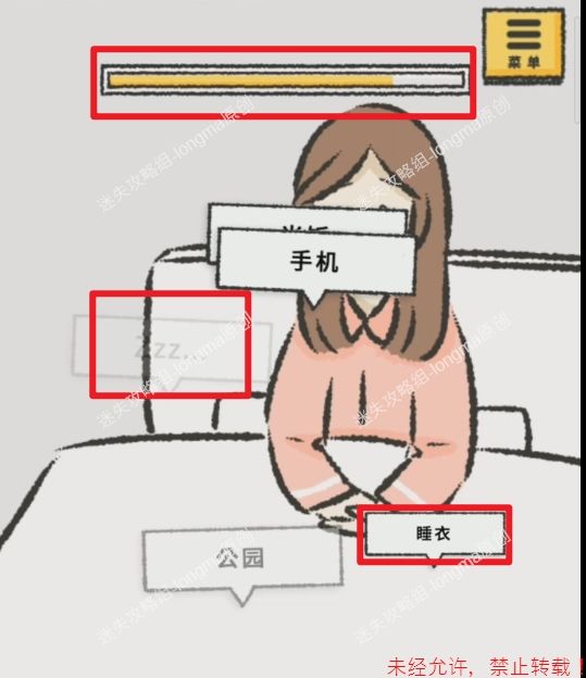 16.点击睡衣、Zzz...、枕头有助于睡眠的内容,完成进度条。16