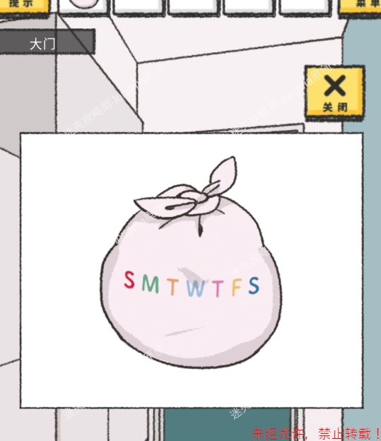 20.来到大门位置点击垃圾袋,注意垃圾袋上的字母颜色。20