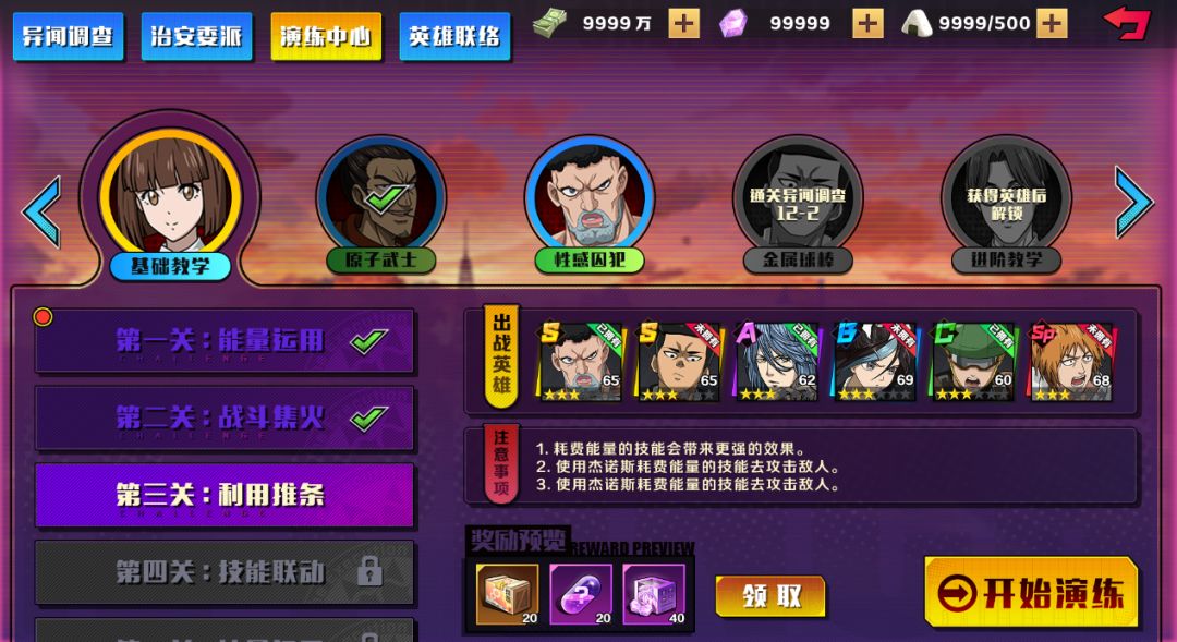 各位英雄协会成员大家好,这里是拳妹!最近收到不少关于演练中心的反馈,很多英雄协会成员纷纷表示“过不了!”、“打了七八遍都没过!”“卡了一晚上了!救命啊”。为了帮助这些卡关很久的小伙伴,拳妹决定将详细介绍通关演练中心不同关卡的通关思路和技巧。今天带来的是其中的基础教学篇通关攻略。基础教学篇共有6个关卡,主要考验各位英雄协会成员在战斗中对上阵英雄技能的了解、对能量、集火、控制、拉条等技巧的掌握。