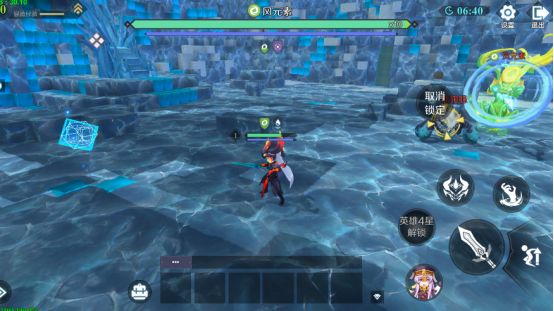Boss出场一段时间后,副本场景中每隔一段时间会掉落冰石,对玩家造成伤害并附带有击飞效果。冰石下落的地方会有一个红蓝两色的光圈预警,可根据其出现的位置提前走位躲避。