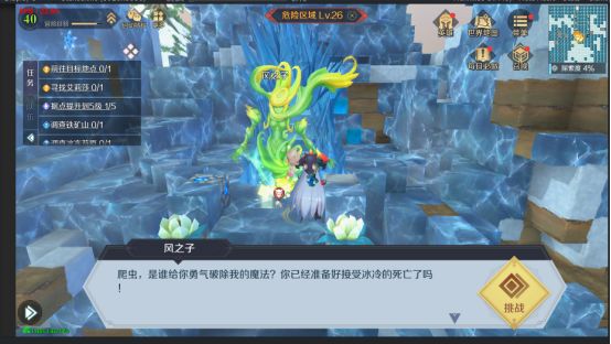 位于工厂王国东北端的最右上角位置,有一座冰封宫殿,找到里面的风之子,与之对话,便能看见副本入口了。正如副本地理位置对应的极寒天气一样,副本中充满了冰冻和减速的元素。