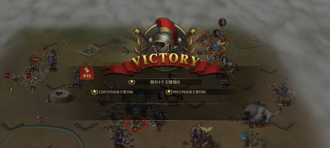 大概站住这三个点,放宝石,下回合罗马人把中间的5级城的剑士a掉,布雷比斯塔跑回来占城,右下纵火消耗,用兵俑卡住苏雷纳,猛犸卡住阿提拉,用两个宝石当炮灰,放宝石的位置可以靠上一点,把巨兽勾出来,然后三将冲右下,中间用那几个炮灰顶,争取在四万之前把有右下拿了,拿完之后就有人口了,中间出炮灰