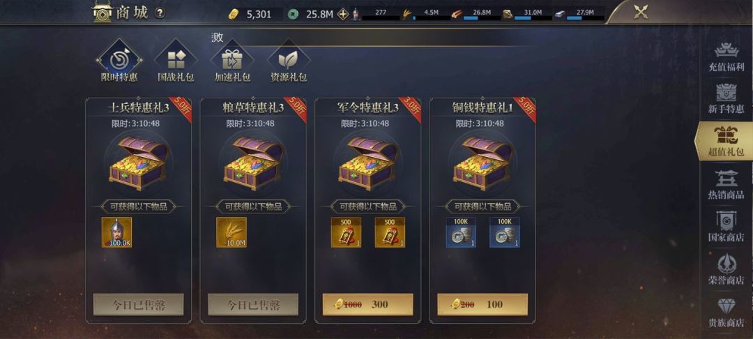 铜币怎么获得:一:买商城特惠兵粮礼包