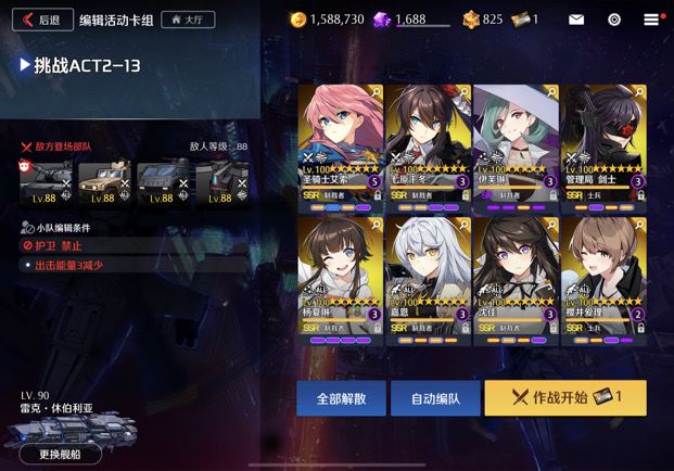 13,从这关开始,你需要雷克的协助。依旧是自动阵容,我那个沈佳和警车无视就好随便上