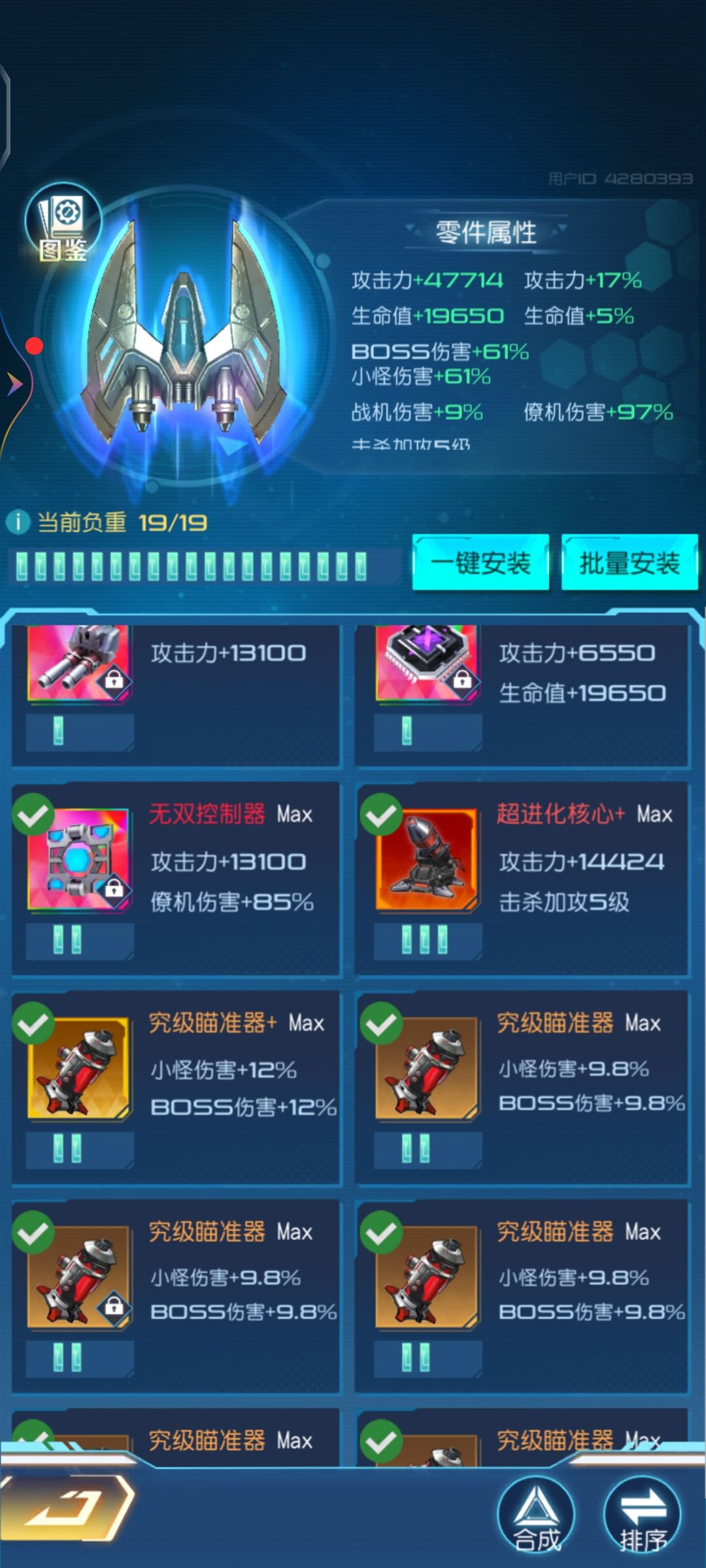 3.零件:任意品级瞄准器越多越好,外加一个进化核心,瞄准器不够就用无双火炮or无双控制器代替,其他不考虑,无尽可根据自身情况带迁跃核心