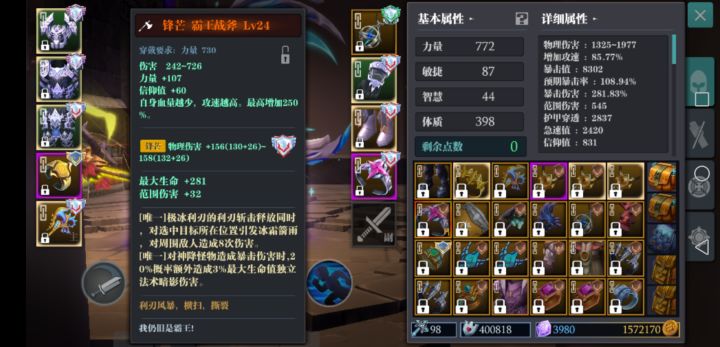 霸王斧头 核心中的核心 血少攻速快!(双3至少要有一个把)