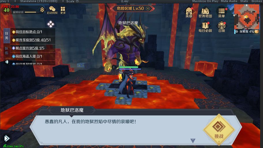 在海港城-熔岩孤岛找到“地狱巴洛魔”NPC