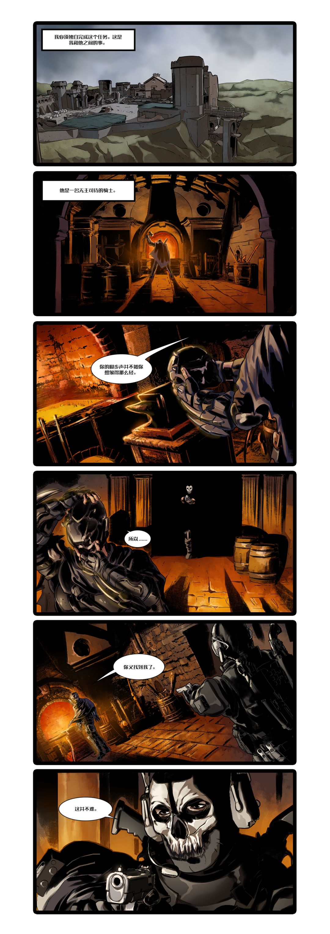幽灵找到了正在搜集黑暗契约情报的圣殿骑士,并提出了合作的想法。但是在合作之前,他们两人之间似乎还有一笔账要算...