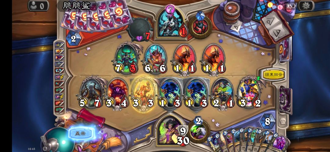 通过香蕉恢复生命;3/2/4没让我的其他随从进入不可被法术和技能选中的魔免状态;还有两个随从可以攻击,杰夫里斯却不给破奥秘的牌(对方寒冰屏障);一套牌,两个任务,三个buff…