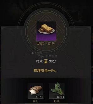 3:胡萝卜面包(物理攻击+4%)