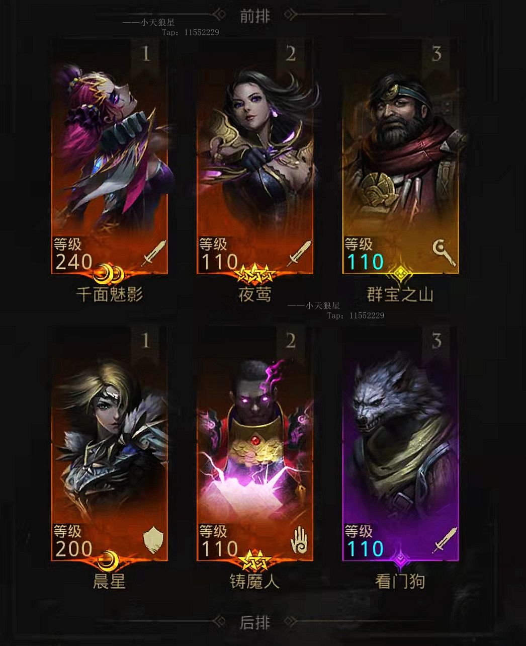 【4个升到100级左右或更低(看你)余下的经验优先给主输出【千面】,主盾【晨星】】