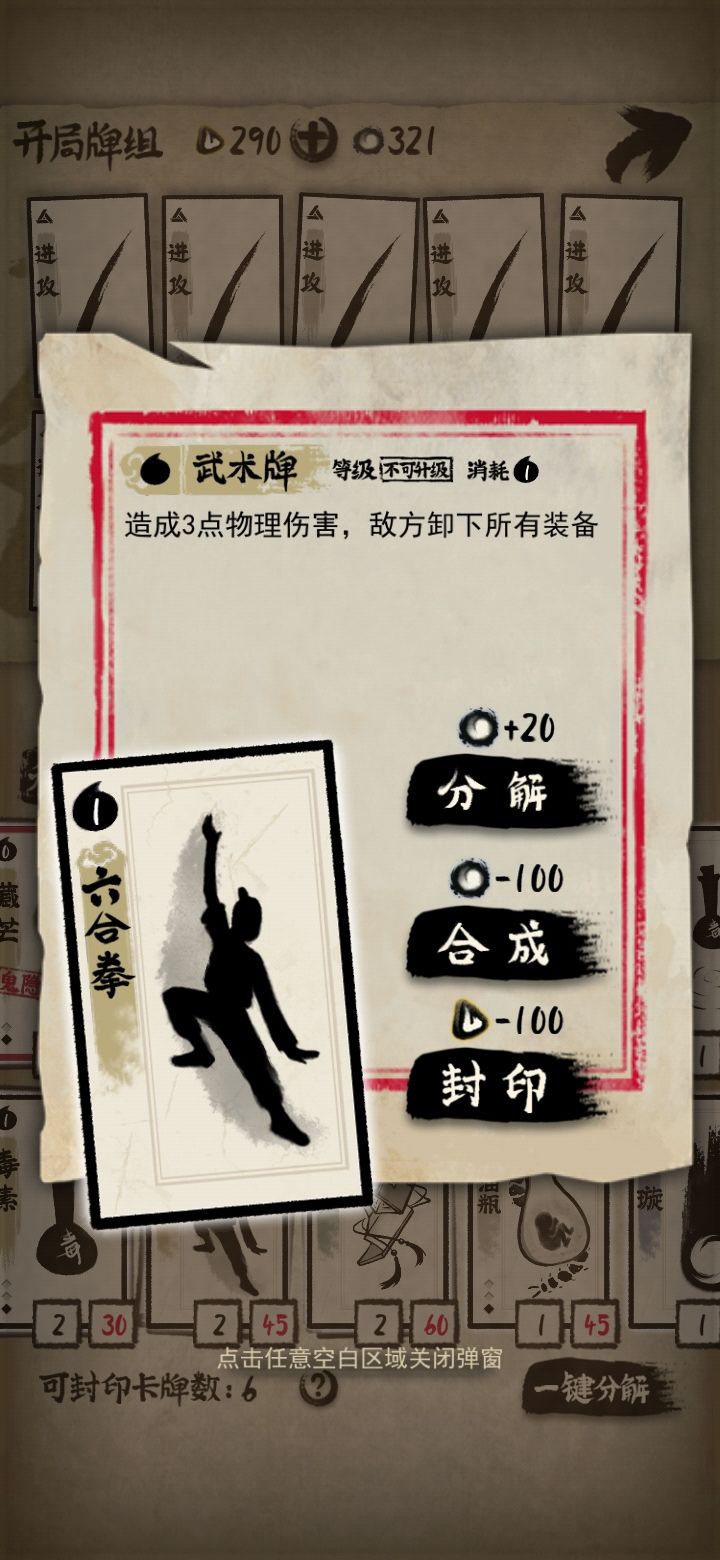 至于开局,玩毒就必拿逆毒,带两张或者是带一张游龙。度过前期后期成型是比较舒服的我两回合毒叠过百,阎王就这么没了。玩拳就不好说,我牌一般带罗汉拳和地躺拳,其他全靠捡。