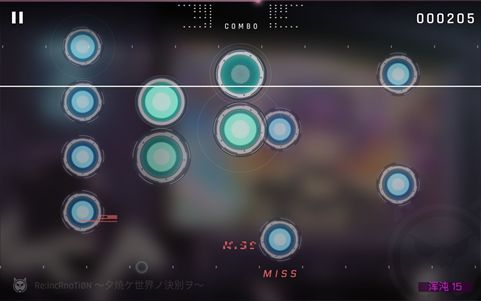 1)Cytus系列游戏的线速设定很好体现了“小节“概念,通常一屏都是整数拍(1,2,4拍居多)。在弱段,谱师往往放慢速度,4拍一屏;在中速段,2拍一屏,在强段1拍1屏,而在渐强/渐弱段则会采用变速。