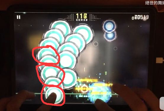 (2)双手来回对角位移的情况下(下水老鼠、chaos and abyss),尽量放松,靠打击音校准,还可以将双手小角度旋转以”横竖“地解决对角的一个方向。