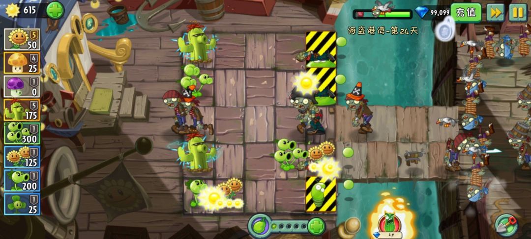 熟练掌握还不错,不要急着用椰子炮,否则,有更多僵尸聚集的时候无法攻击,就不可以造成更多的连击,更大的分数。