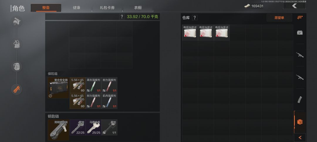 比起简易急救盒,军用急救包的治疗效率会更高一些,护甲方面可以选择4级以上的胸腹甲,武器也可以进行一些适当的改装,将垂直和水平后坐控制以及人机工效进行优化,子弹最好配备30穿透以上的,防止在面对防弹衣时过度刮痧。能够重复多次使用的止疼药和手术包也是必须的,如果有条件也可以携带一些药剂(如耐力强度剂)来提升跑图效率。当然,我建议你把这些价格不菲的高级药物都放在保险箱里,需要再打开背包使用。