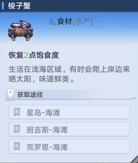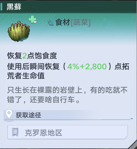 大米,沙拉酱,洋葱,牛奶,气泡水在食材商人处购买,星岛的在遗迹A01门口,班吉斯的在班吉斯码头。由于白色食材以及蜂蜜获得途径过于直观,本文不做赘述。本文将展示其余食材获得地点并着重介绍紫色食材榛子,虫草,黑松露的获得途径