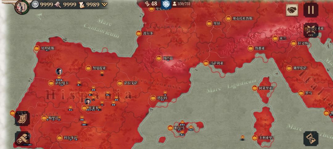 这是我之前玩的,将领配置:指挥官(我之前把他培养成骑兵将领)、凯撒、汉尼拔、斯巴达克斯、阿提拉、庞培、安东尼、维钦拖利