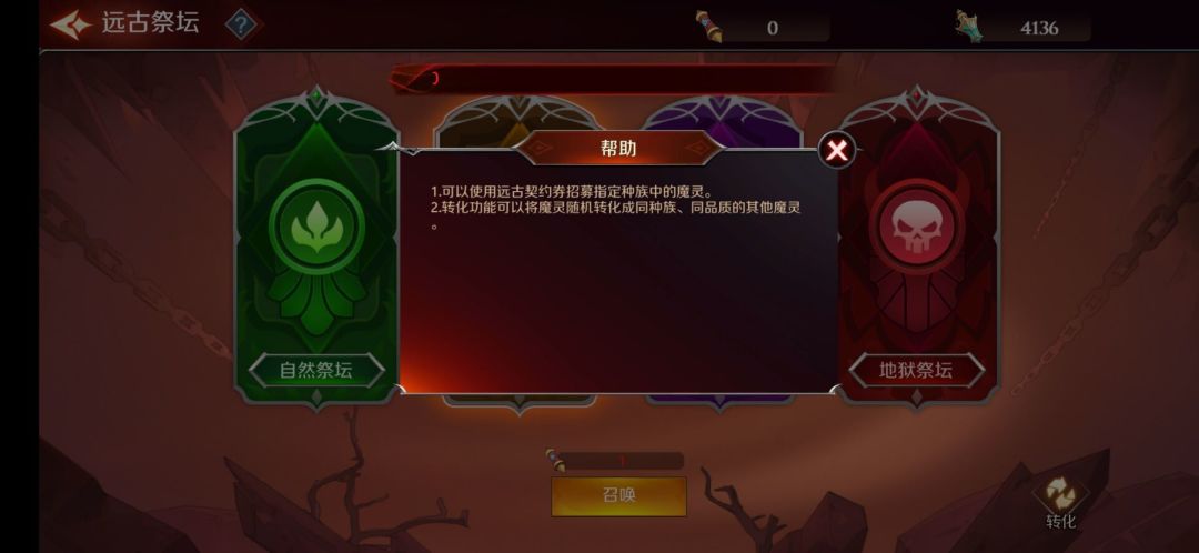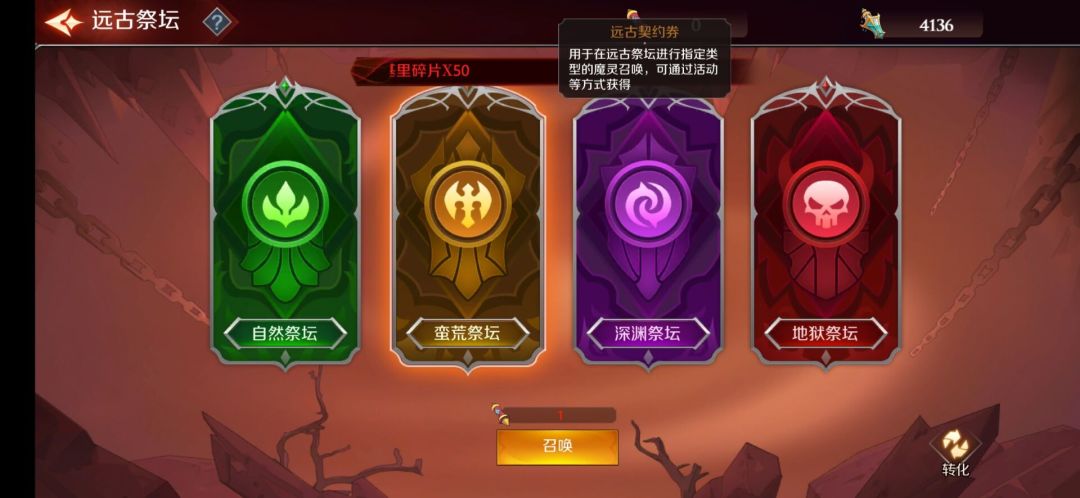 远古祭坛是4个阵营卡的固定召唤同阵容转化详情看图
