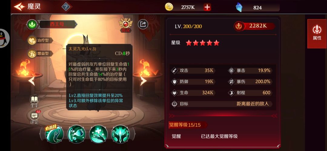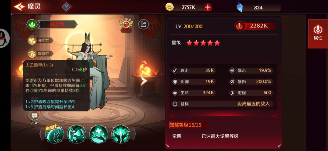 西王母是一个双重奶盾,为什么呢?因为她治疗友方的同时还加盾,最主要是还能复活,也是比较实用的卡,主堆生命防御,因为她的治疗都是百分百比的,肉就完了