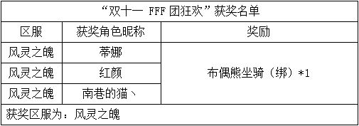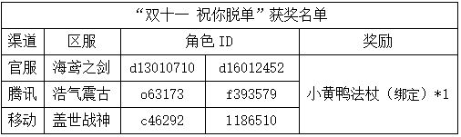 《世界OL》双十一活动获奖名单