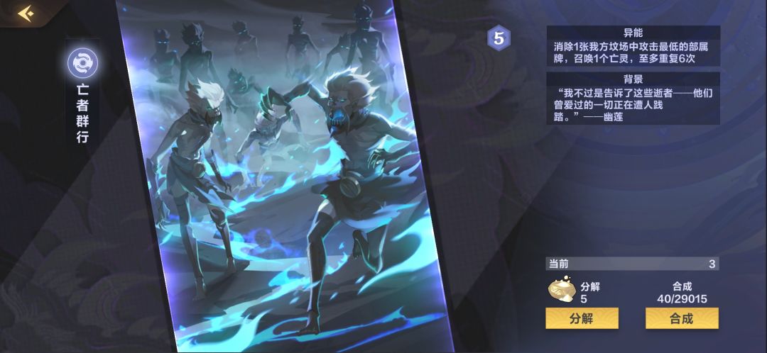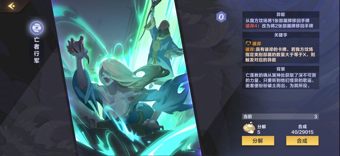 亡者行军,后期捞司苓,只要场上有木甲,放司苓冲一波就不亏,也是四分