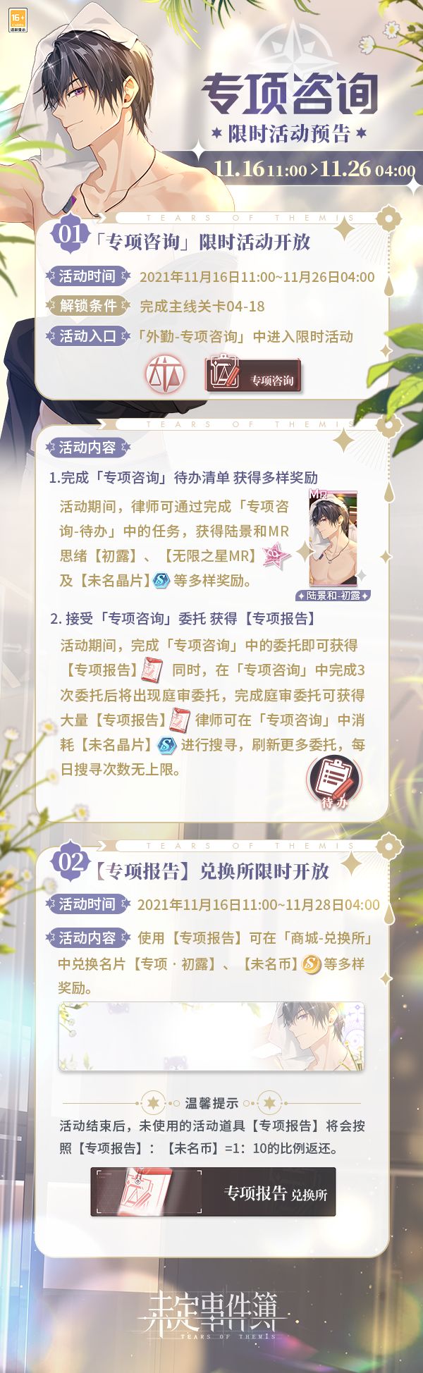 「专项咨询」限时活动预告丨完成任务可获陆景和MR思绪【初露】