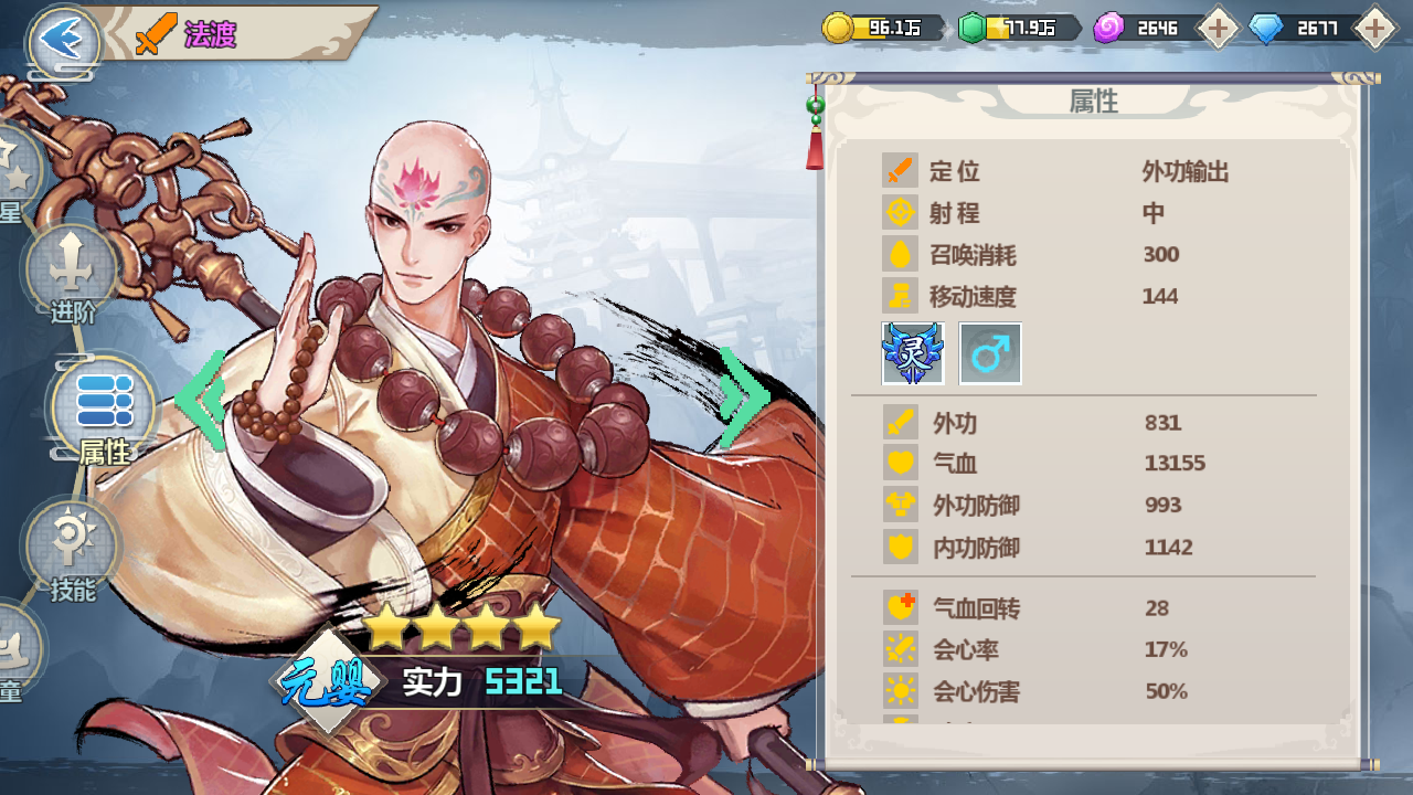 法渡太废了~~~感觉法渡战力就是虚的,4星法渡还没有2星胥文的攻高血多,胥文战力才3800,而且法渡召唤消耗300,胥文只要250😇
