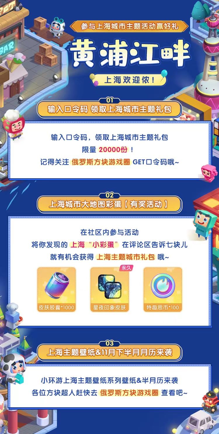 嗨~又是我,你们的福利大使七块儿!小环游环游世界的列车驶过南非,缓缓开进一座魅力时尚之都——上海!而说起上海,大家想到的是东方明珠塔,还是民国时期夜上海的繁华呢?话不多说,各位方块超人准备好迎接我们的上海城市主题活动吧!