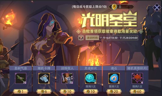 活动内容:活动期间,在冒险模式/梦魇模式中战胜首领,即可获得“圣堂徽章”,每日上限10个。“圣堂徽章”可换取丰厚奖励。