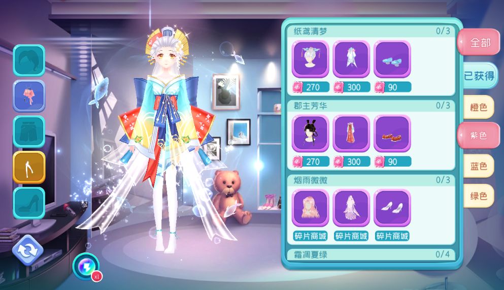 ● 使用碎片可兑换绿、蓝、紫、橙四种品质的时装。