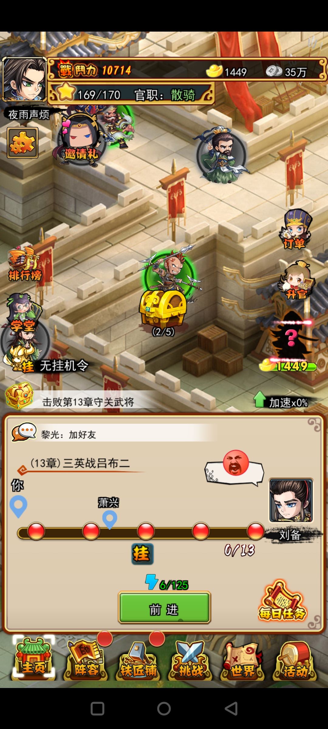 开局抽张飞和典韦。其他随意,资源全给这两个,抽奖随便抽到了,不用刷开局,邀请码拿大将