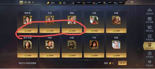 氪金大佬可以直接买专属和v武,平民玩家留着,每日买两档军令,从最高的关卡往下刷,等出活动,金锭十连抽奖必出2橙,且有消费返利的活动可以悉听尊便。