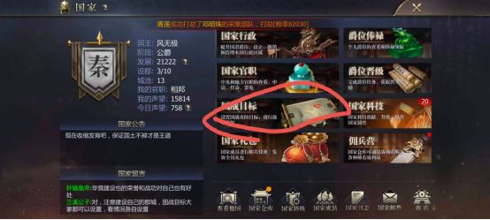 跑商不必多说,清一色的军团币车,其他车一律不考虑,有条件的可以跑金车,跟着高战力跑能获得更高的奖励,建设,很多朋友存在一个误区就是做什么事必须设置相对应的目标才能得到双倍奖励,其实不然,相反只要设置了国战目标搞建设和屯兵就能得到双倍奖励,不过设置建设或者屯兵可以让二者加速,在国家的国战目标里选择进攻或防御的城市