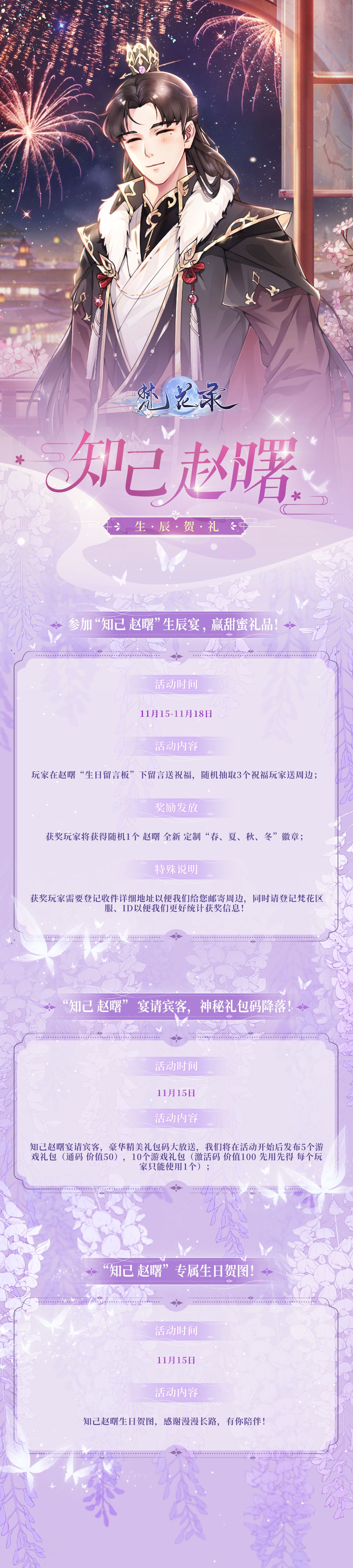 1.在本条活动贴下留言送出对赵曙的祝福,阿梵抽取三位捕快大人送出赵曙生日限定徽章套组!
