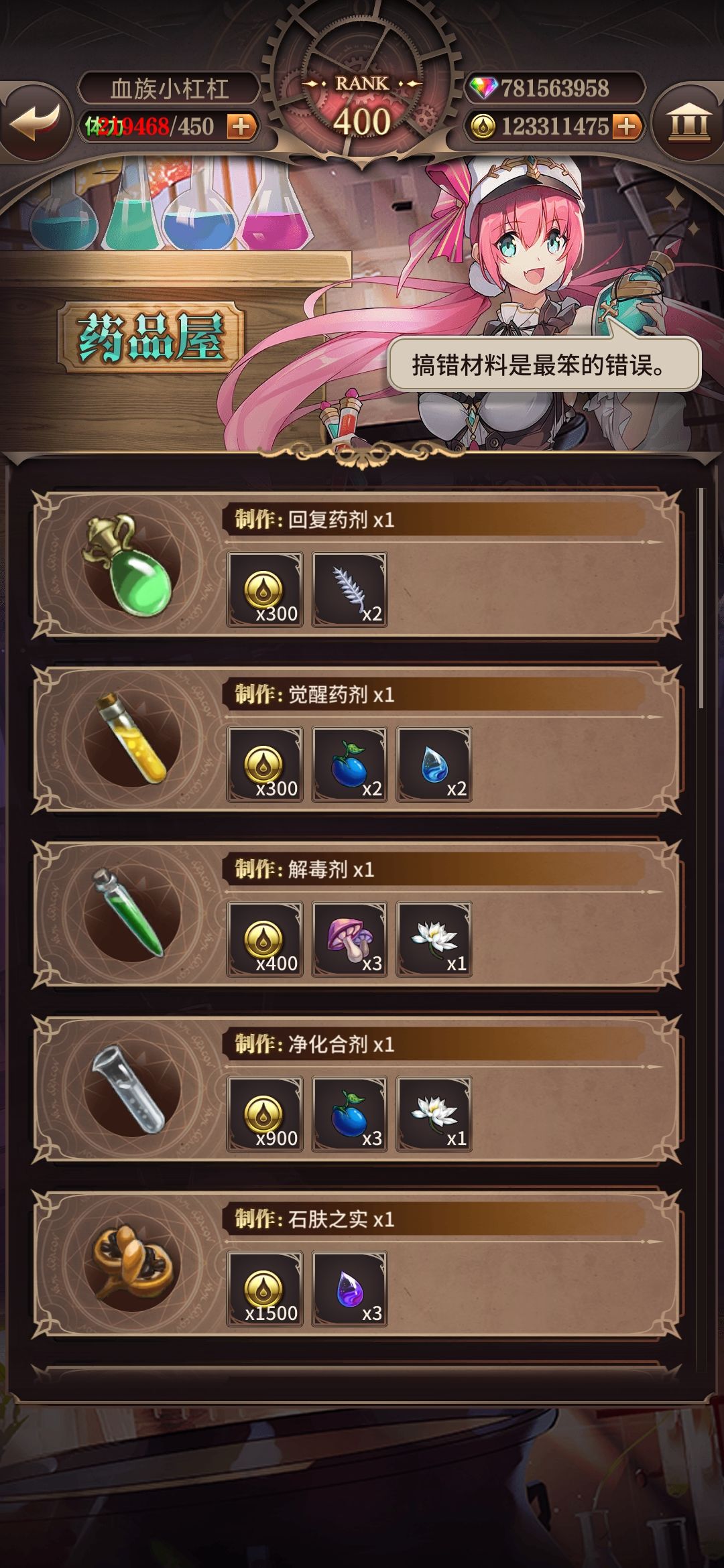 将药品制造所需的素材显示在药品列表中,制造药品时可以更加清晰的了解需要的素材