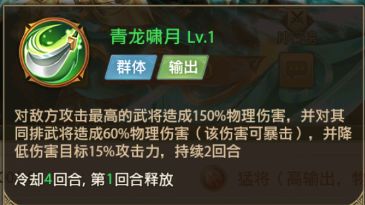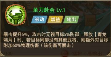 关羽的定位为猛将,高输出的物理攻击类型猛将。
