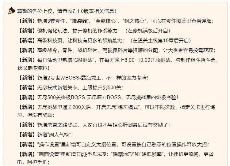 一则新消息:11.19更新7.1.0新版本