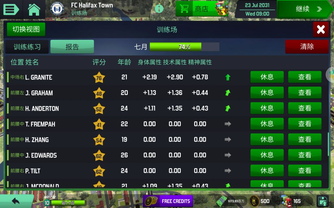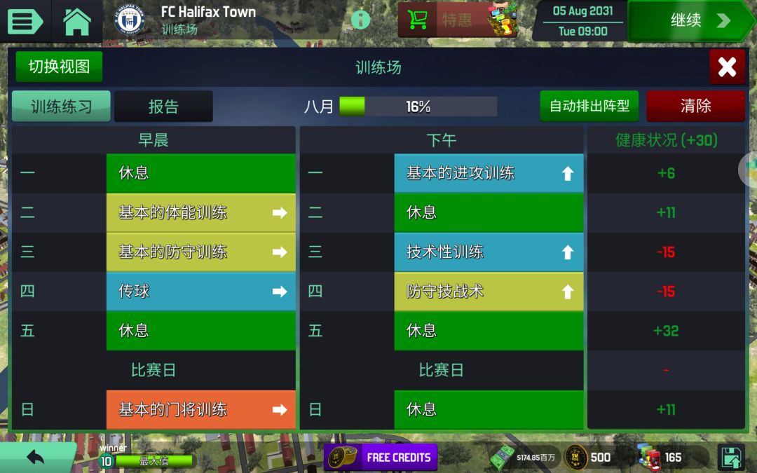 优秀球员的身体属性出现了下滑,但有些年轻优秀球员有时候不练也会慢慢涨,比如我刚举例子签下的西班牙的teguia,他的身体属性就没有下滑,但我忘截图了,大部分不练都会下滑,上面看到就是赛季中出现了一整个周都没比赛的情况周日没安排休息,结果周一比赛个个体力低,有时候也会出现连打两天比赛的情况,多安排休息提替补上去打就行了