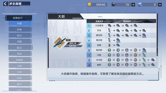 详细的武器操作技巧可以在游戏界面左侧的“求生指南”里查看。