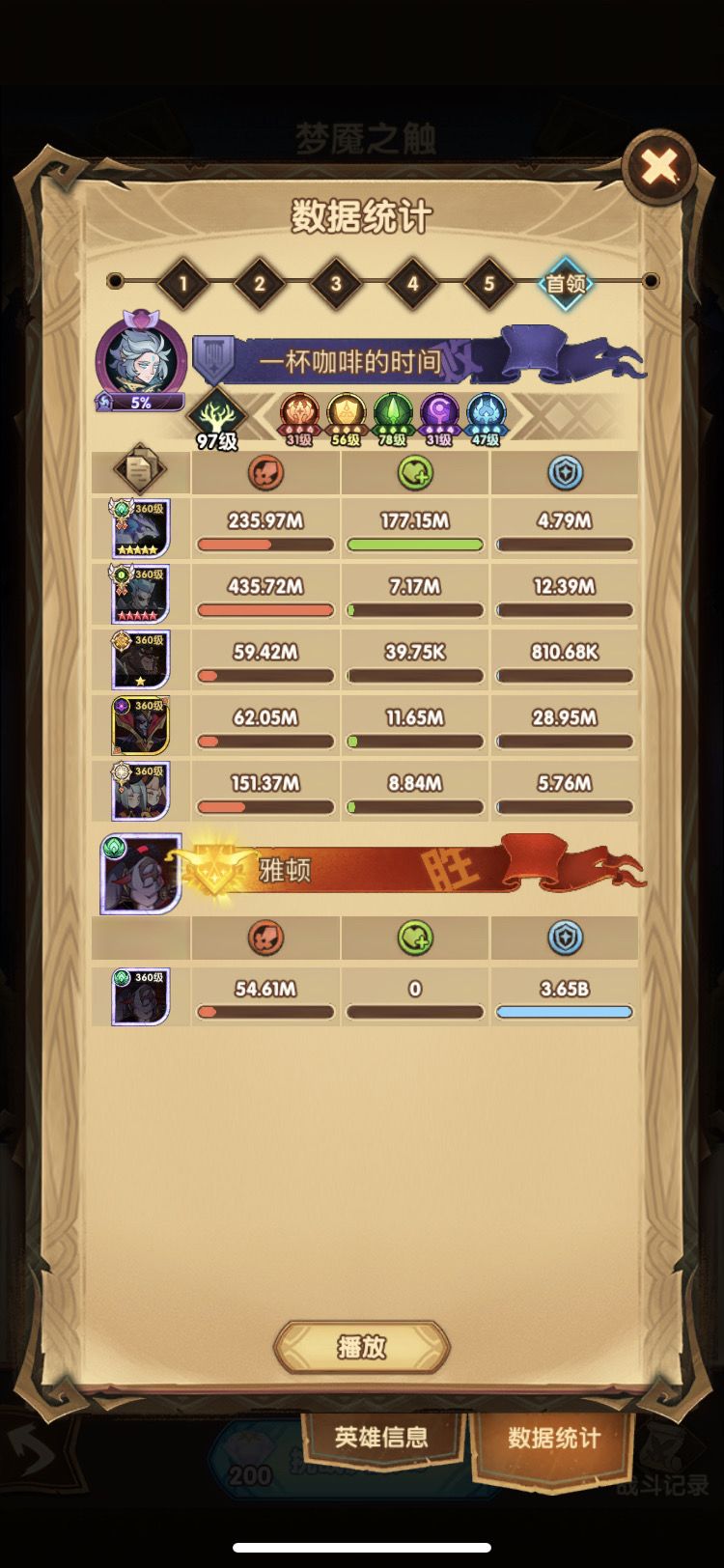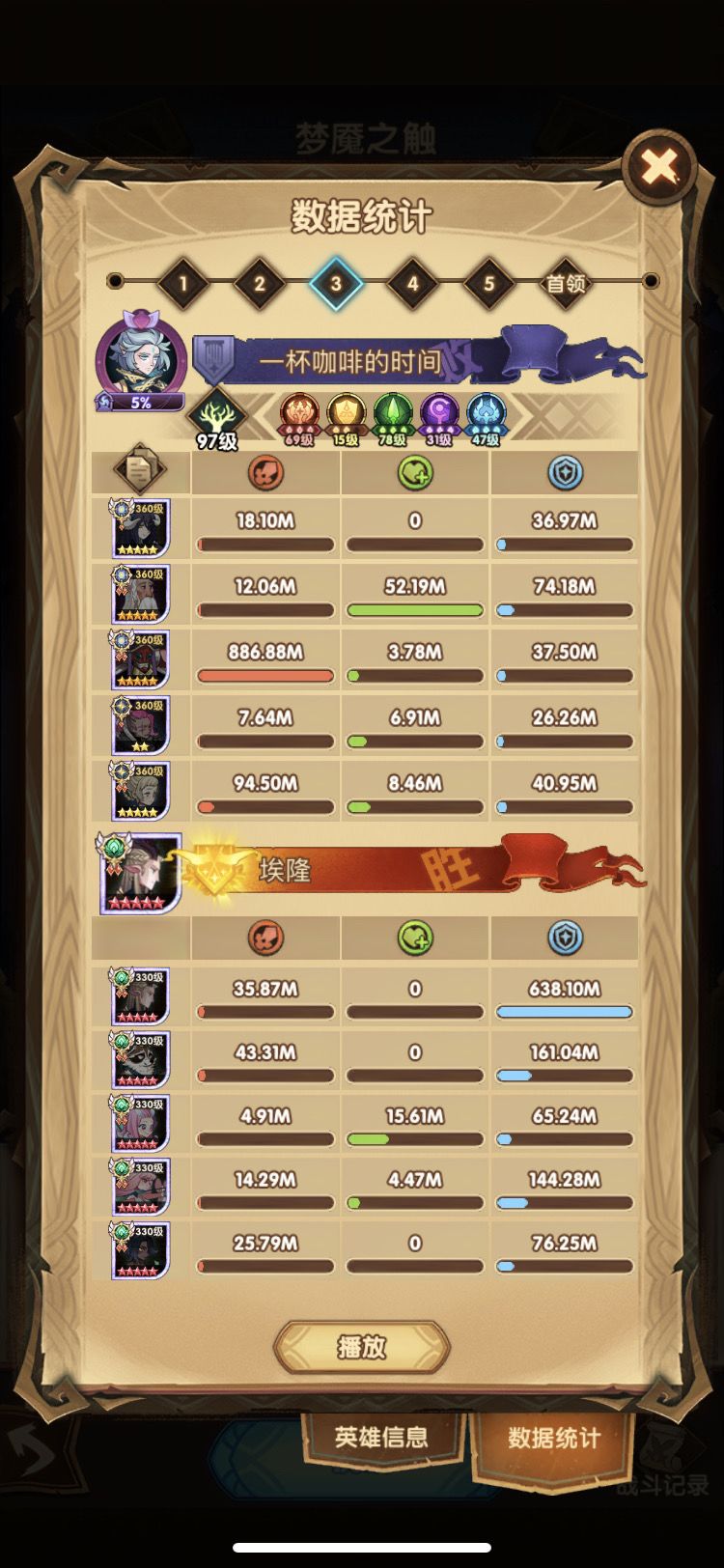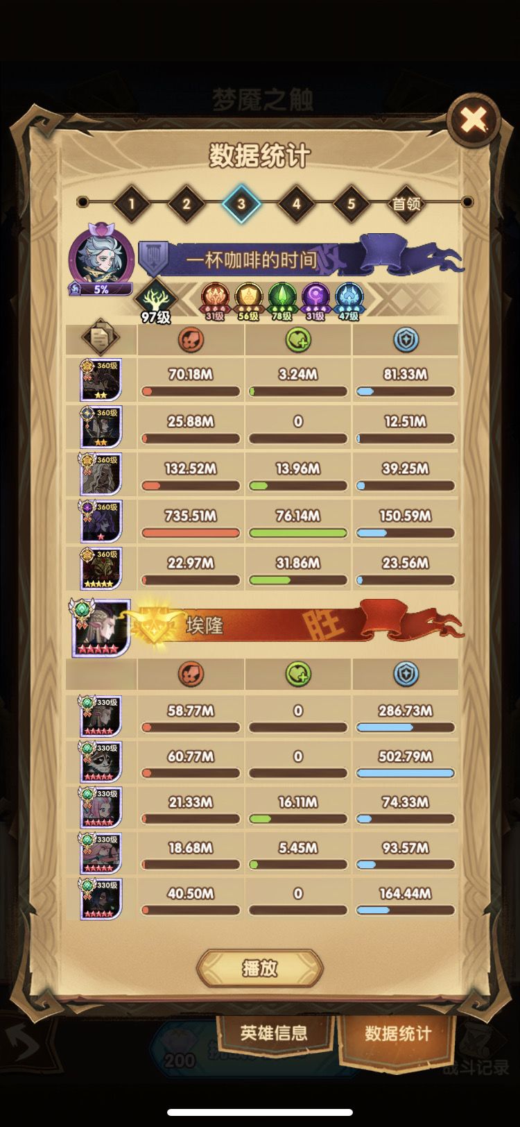 第三队 放弃 但是还是能打300M的 因为这个号也没有豹女 没有刻印魔女 不然用第一天分享的的三队 也能打500-1B不等