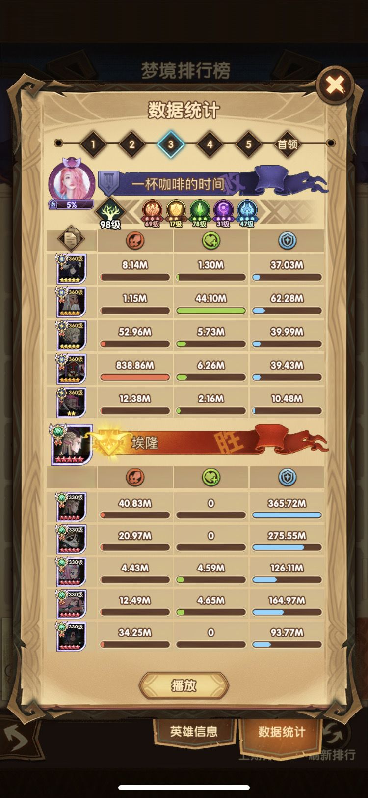 总结一下 第二队打了1-2-4-5 放弃3-boss 其实4队也很水了。周四排名9.9% 肯定无缘前10%了